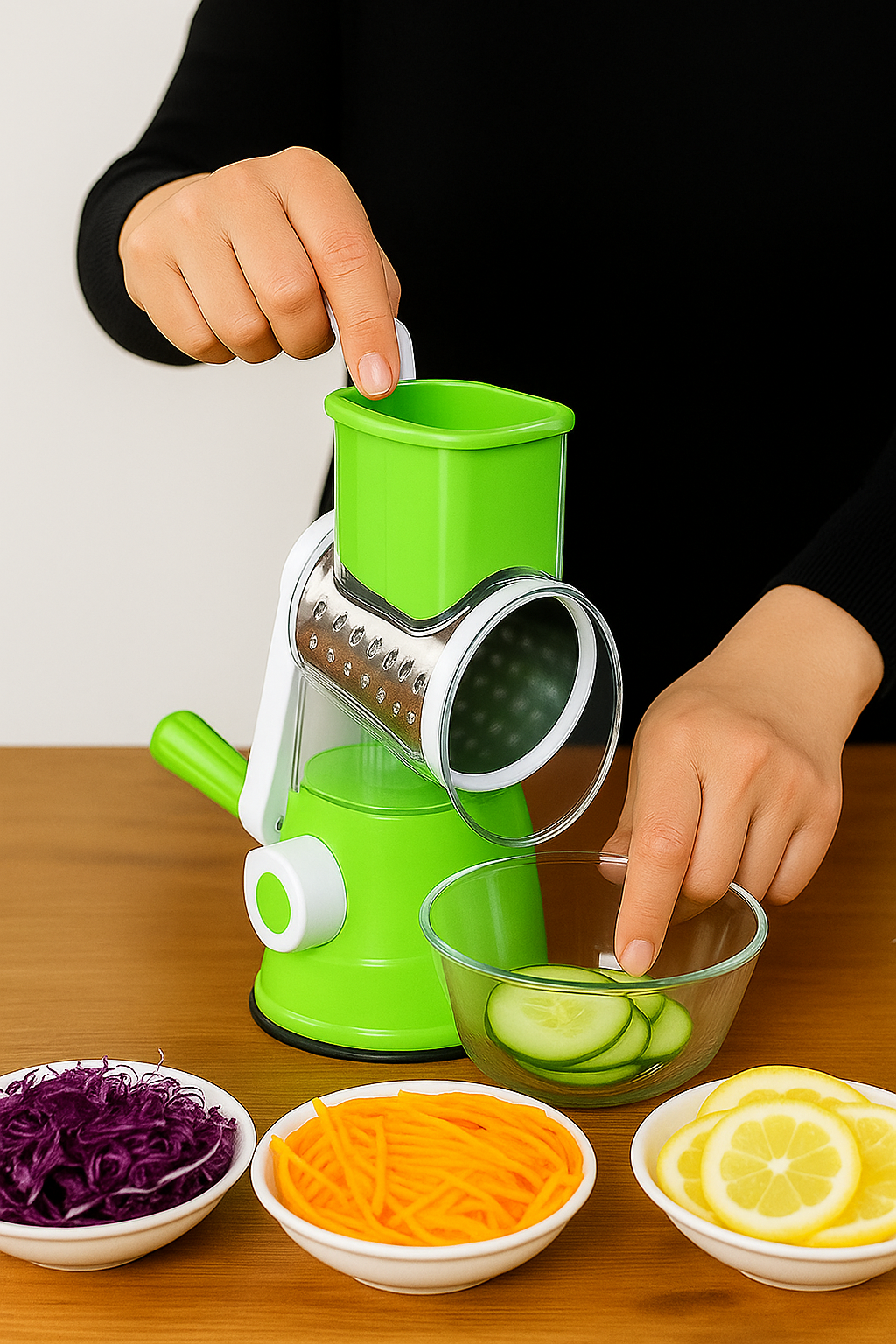 Con nuestra cortadora de alimentos, podrás olvidarte de los métodos tradicionales que requieren tiempo y esfuerzo. Su tecnología de corte avanzado te permite obtener resultados uniformes y precisos desde el primer uso, brindándote una experiencia de preparación cómoda y eficiente.