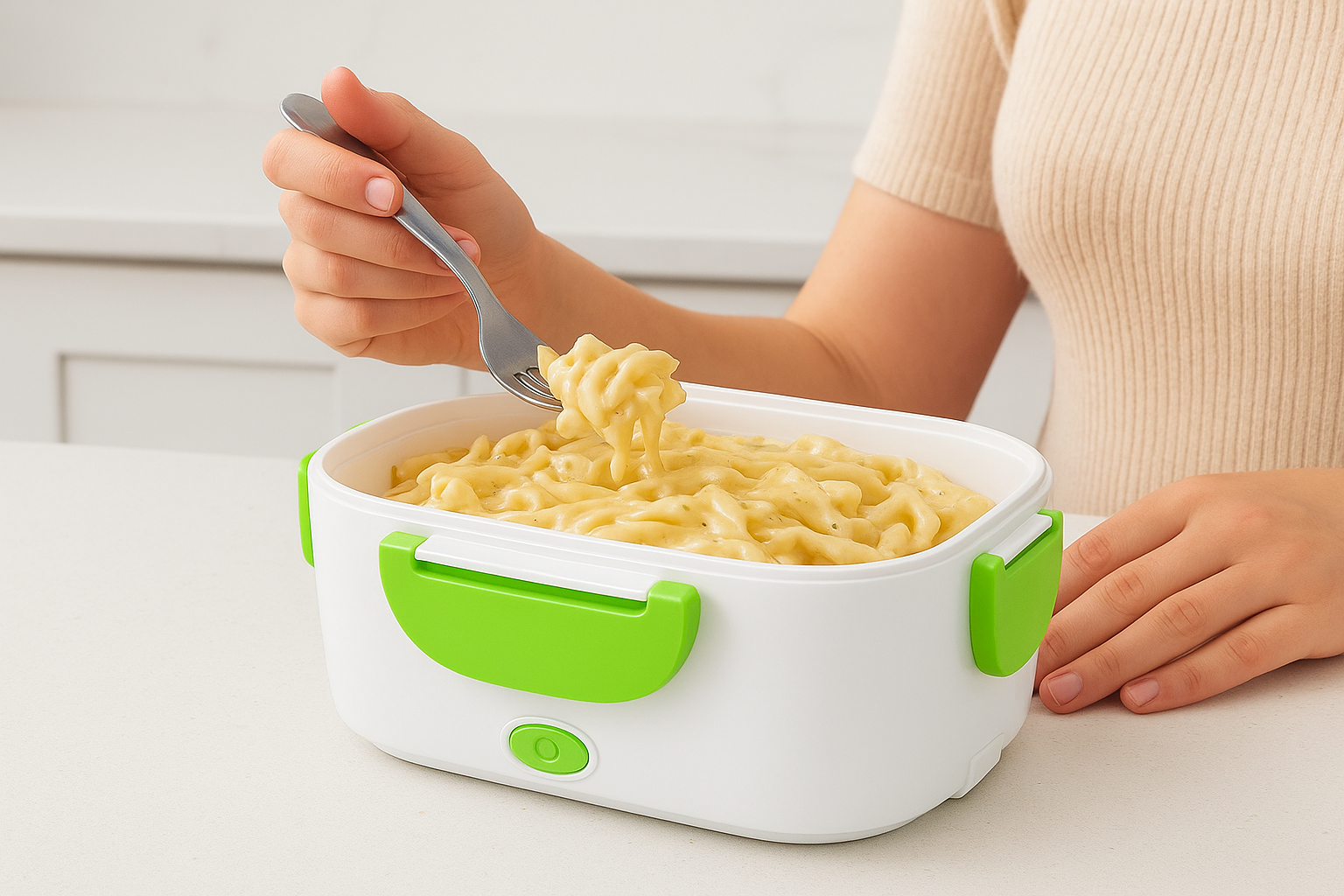 Con nuestra tartera eléctrica portátil, disfruta de tus comidas favoritas recién hechas estés donde estés. Solo necesitas unos minutos para tener un plato caliente y sabroso, sin microondas ni complicaciones. Ideal para la oficina, el coche o tus escapadas.